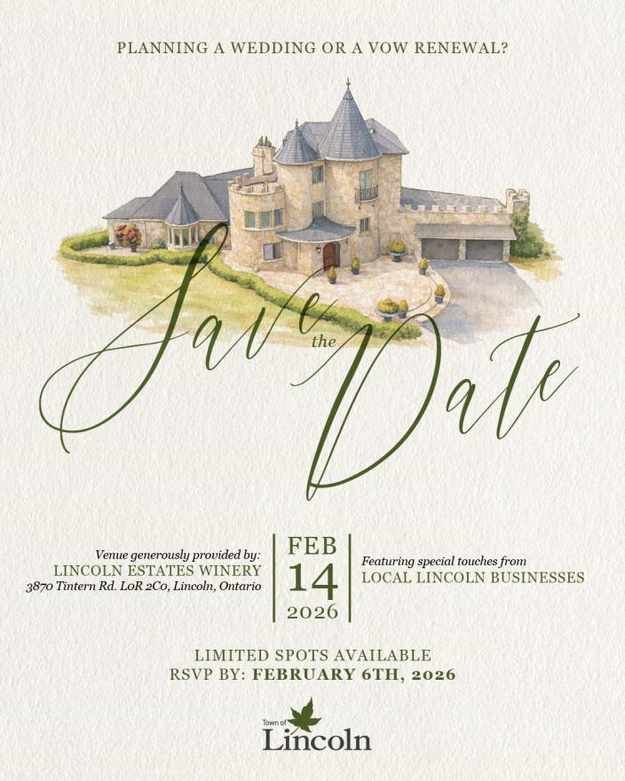 The Town of Lincoln is pleased to offer civil marriage ceremonies to couples looking to have a simple, non-religious marriage ceremony. Civil ceremonies are offered in the Council Chambers (4800 South Service Road, Beamsville, ON, L3J 1L3), with the service lasting approximately 20 minutes.
